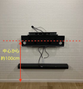 ウチは65インチなので、このサイトによると大体115センチの高さが良いとのことですが、家族の意見を聞いたところ、100センチほどがちょうど良いと言うことになりました。